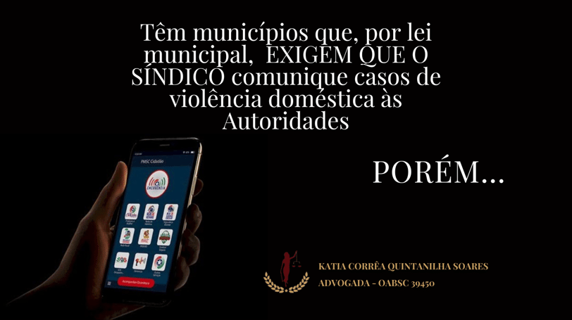 Alguns municípios possuem lei municipal, que exige que o síndico seja obrigado a tomar providências legais em casos de ocorrência de violência doméstica ocorrida no condomínio, geralmente independente dos fatos ocorrerem em ambientes comuns ou privados.